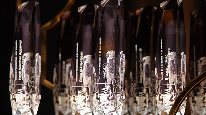 The Purdue Engineering 38 by 38 award is inspired by the legacy of alumnus Neil Armstrong, who was 38 years old when he became the first person to set foot on the moon.