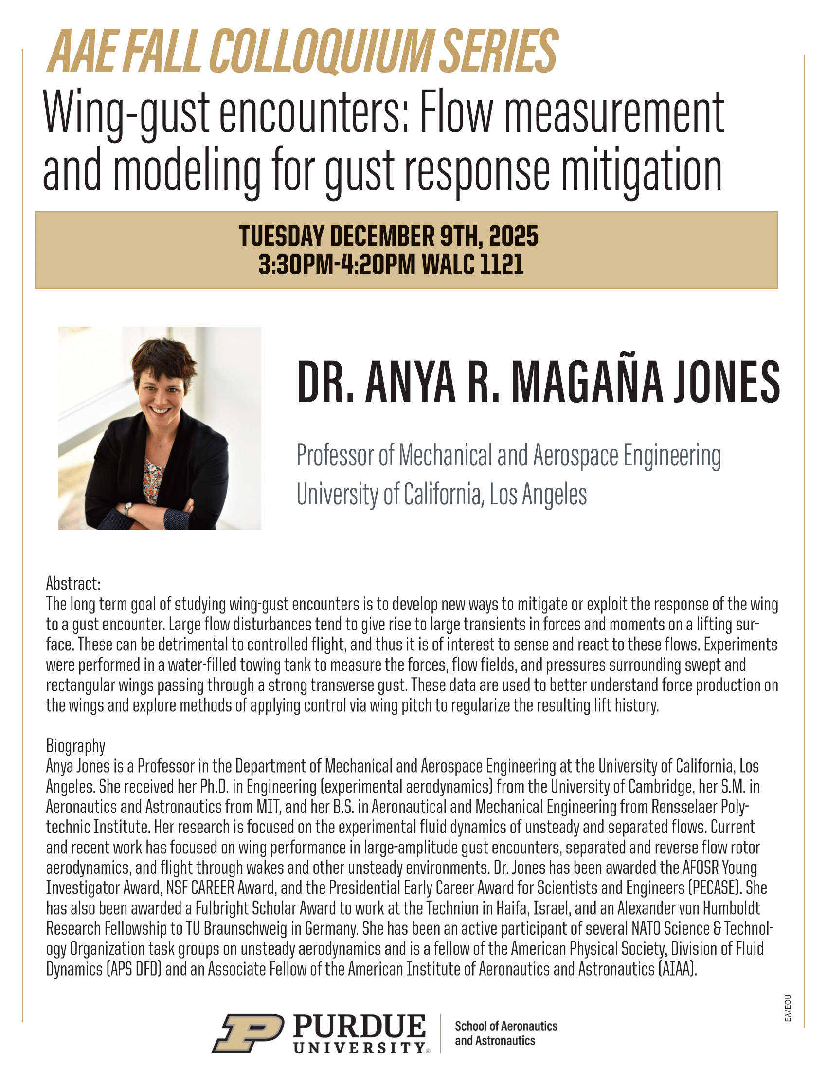 AAE Fall Colloquium Series: Flow Measurement and Modeling for Gust Response Mitigation