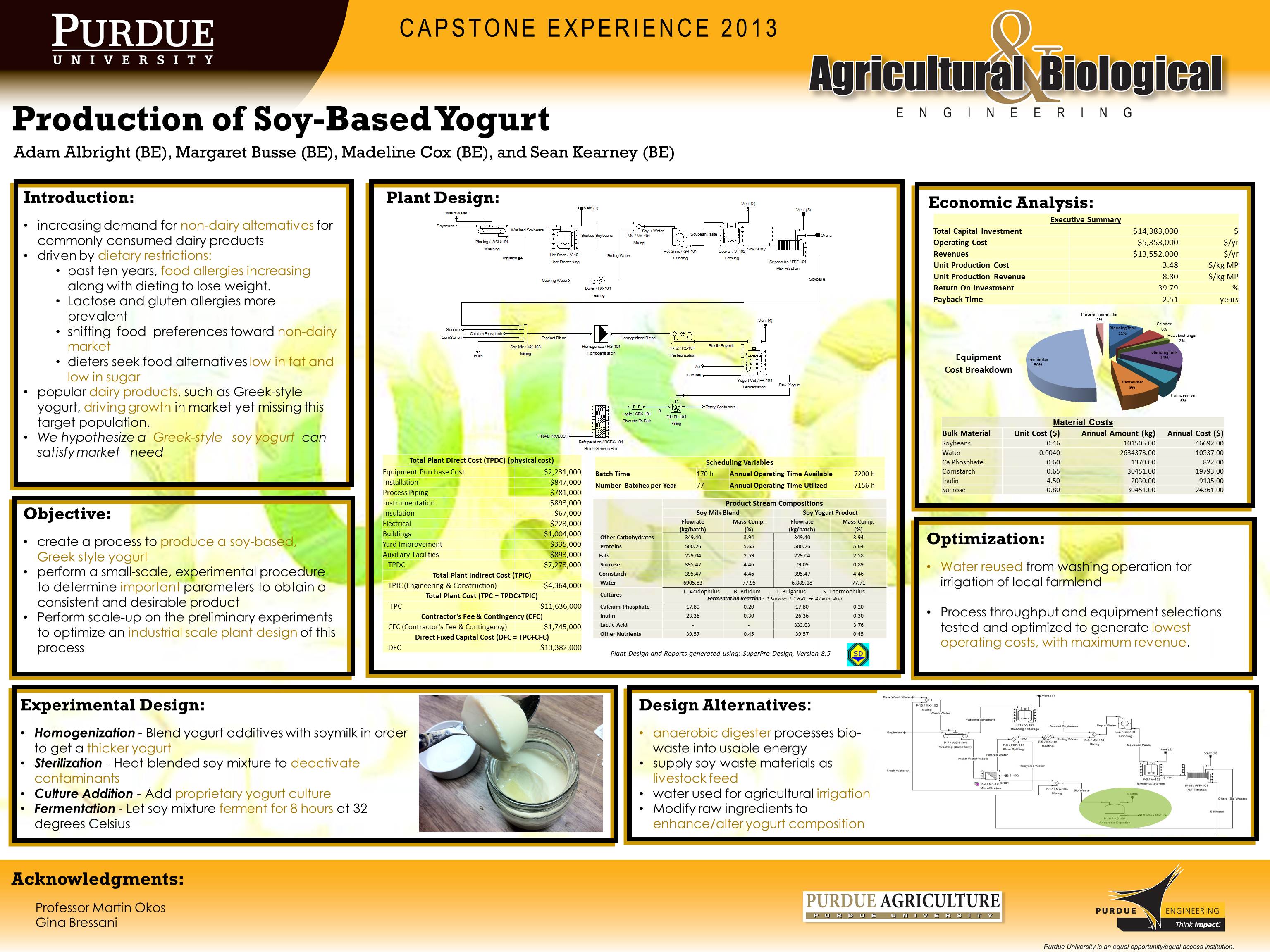 Adam Albright, Margaret Busse, Madeline Cox, Sean Kearney | Production of Soy-Based Yogurt |