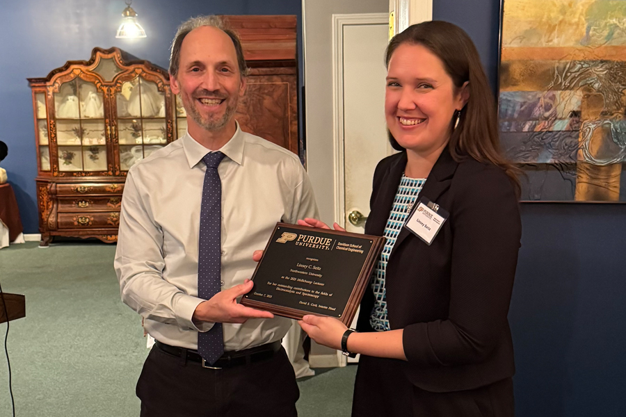The Duncan and Suzanne Mellichamp Lectureship was established in 2013 to recognize the work of a distinguished young researcher in any area related to the field of chemical engineering. The recipient is selected by the Davidson School of Chemical Engineering faculty in recognition of his or her contributions to research and education.