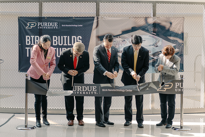 The two joined Chiang in celebrating the first phase of the $100 million enhancements for the Birck Nanotechnology Center in Discovery Park District at Purdue. Panchanathan and Young helped mark the Birck event by cutting a ceremonial ribbon in front of the Scifres Nanofabrication Laboratory, the research center’s state-of-the-art cleanroom.