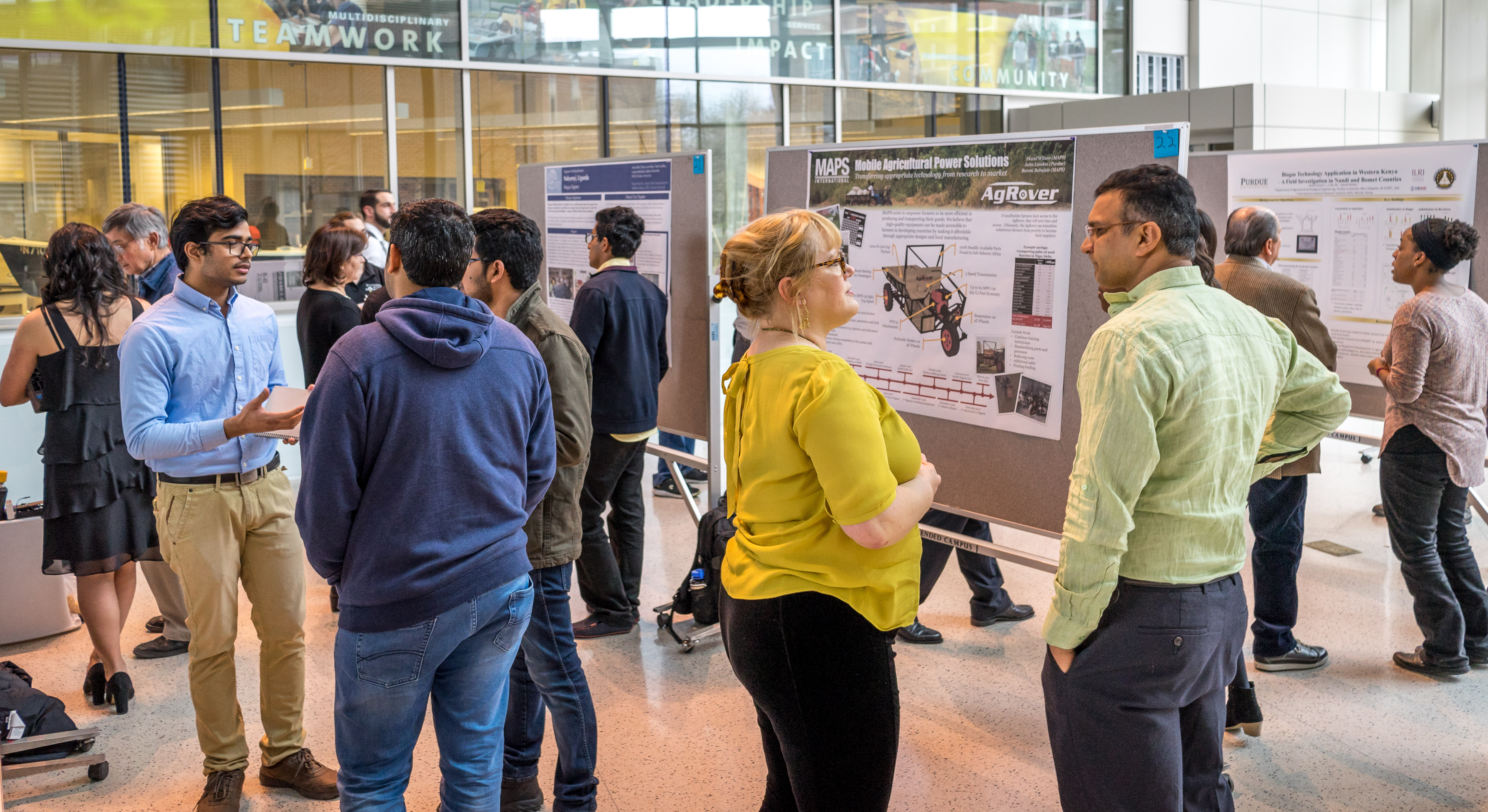 Each year, the Shah Family Global Innovation Lab hosts the Innovation for International Development (I2D) Exposition at Purdue University. This event highlights Purdue's incredible engineering innovations focused on addressing the Sustainable Development Goals. Additionally, the expo offers a chance for students, faculty, and staff to connect with international development professionals and partner organizations. We have previously invited representatives from USAID, Bill and Melinda Gates Foundation, Land O’Lakes, Inc., Catholic Relief Services, Save the Children, Global Good, Mercy Corps, and more.