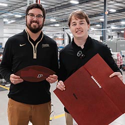 Parker Nordstrom (BSME '23) got his Master's in Sports Engineering at Purdue, and now makes official NFL footballs at Wilson Sporting Goods. He collaborated to turn one of his creations into a guitar to play the Monday Night Football theme!