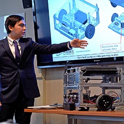 Purdue’s space credentials are known around the world — and now their robots are too! Purdue Lunabotics traveled to the United Kingdom to help launch NASA’s first Lunabotics competition overseas. While abroad, students had the opportunity to share experiences, demonstrate their own rover, and lay the foundation for an international community of scholars.