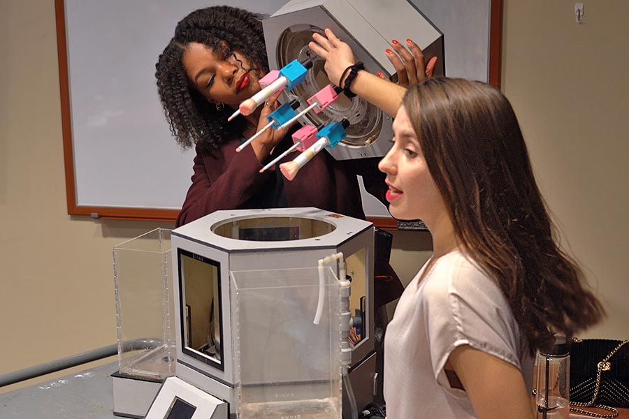 “There’s nothing else like it in the market,” said Dina Abdulaal, a graduating senior who was part of the team that created the prototype.  “It’s a high-end solution designed for professionals, like makeup artists and beauty salons.  A full set of makeup brushes consists of 10 to 20 brushes, and most people wash them by hand over a sink, which is very time-consuming and puts a lot of strain on your wrists!  Envie does it all for you, in a fraction of the time.”