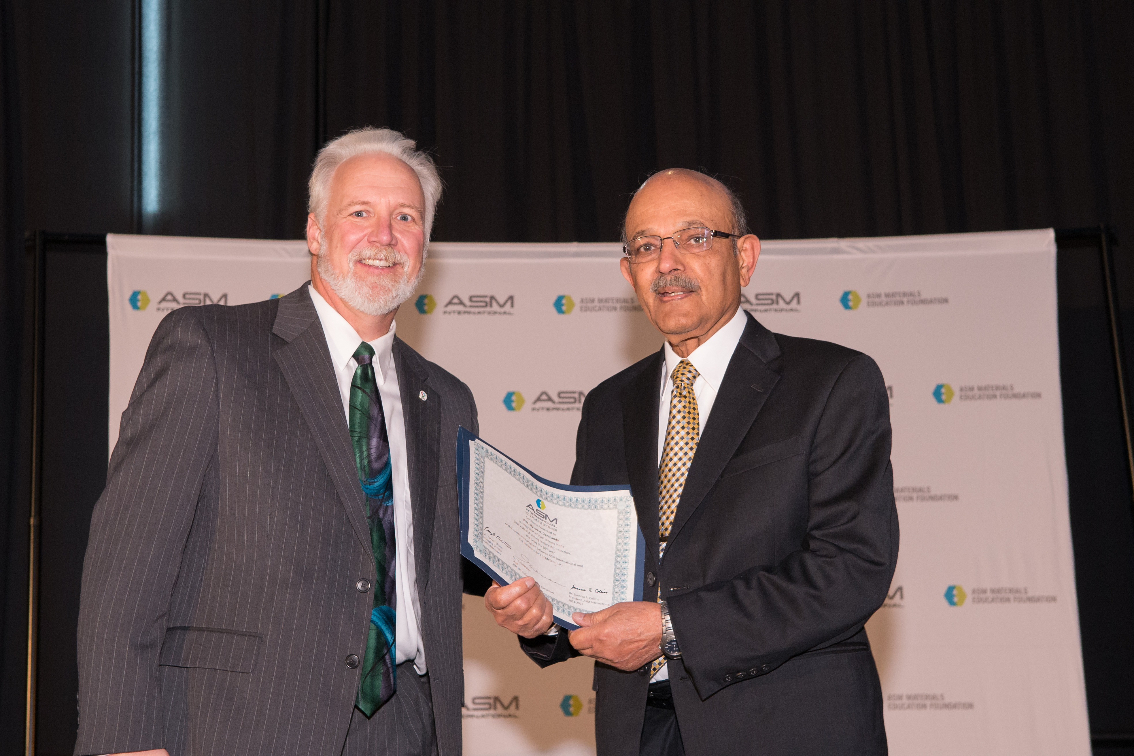 During the MS&T Conference on October 5, 2015, MSE Professor Mysore Dayananda received the 2015 ASM-IIM Visiting Lectureship Award. This award provides an honorarium for travel within India for presenting lectures. This program established in 1979 between ASM and the Indian Institute of Materials (IIM) is intended to promote international cooperation and provide a useful service to ASM members. In this context, he is currently scheduled to present a lecture entitled ““Selected Phenomena in Multicomponent Diffusion” at the Indian Institute of Technology at Kanpur, India on December 28, 2015. The lecture is sponsored by IIT-Kanpur and the Kanpur Chapter of IIM.