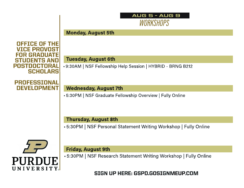 Please find important dates and deadlines, professional development events, and more via this link: https://www.purdue.edu/academics/ogsps/about/calendar/