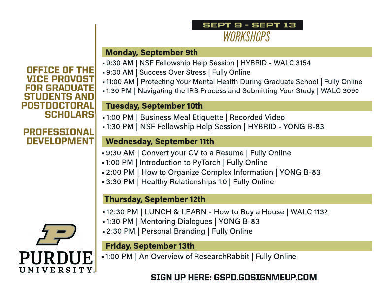 You can also find a complete list of our currently scheduled workshops at: https://www.purdue.edu/academics/ogsps/professional-development/workshops/index.php. Please also see attached.